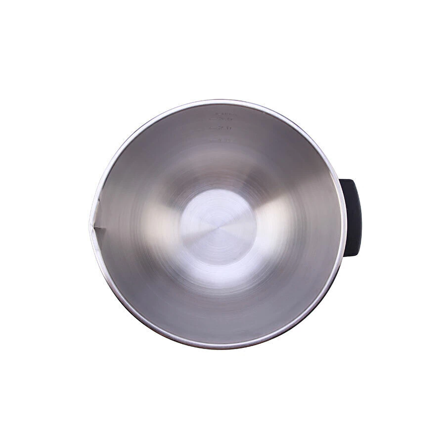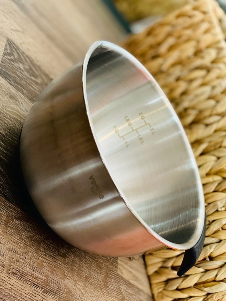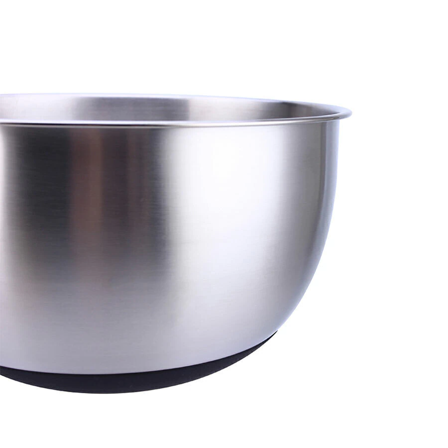 Bowl batidor fabricado en acero inoxidable AISI304 de alta calidad, con base siliconada antideslizante para mayor estabilidad durante su uso. Incluye escala de medidas en el interior y un práctico pico vertedor para facilitar la transferencia de mezclas.