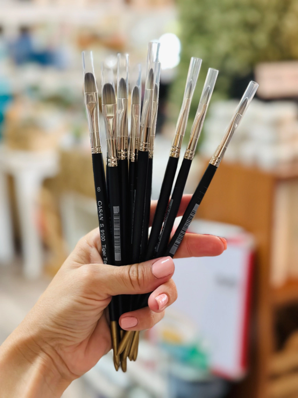 El pincel Casan Serie 9100 Lengua de Gato cuenta con una punta de diseño curvo en pelo sintético Tigre Toray, ideal para trazos suaves, degradados y mezcla de colores. Su mango corto negro brinda comodidad y precisión, convirtiéndolo en una herramienta indispensable para artistas que buscan versatilidad y calidad en sus proyectos.