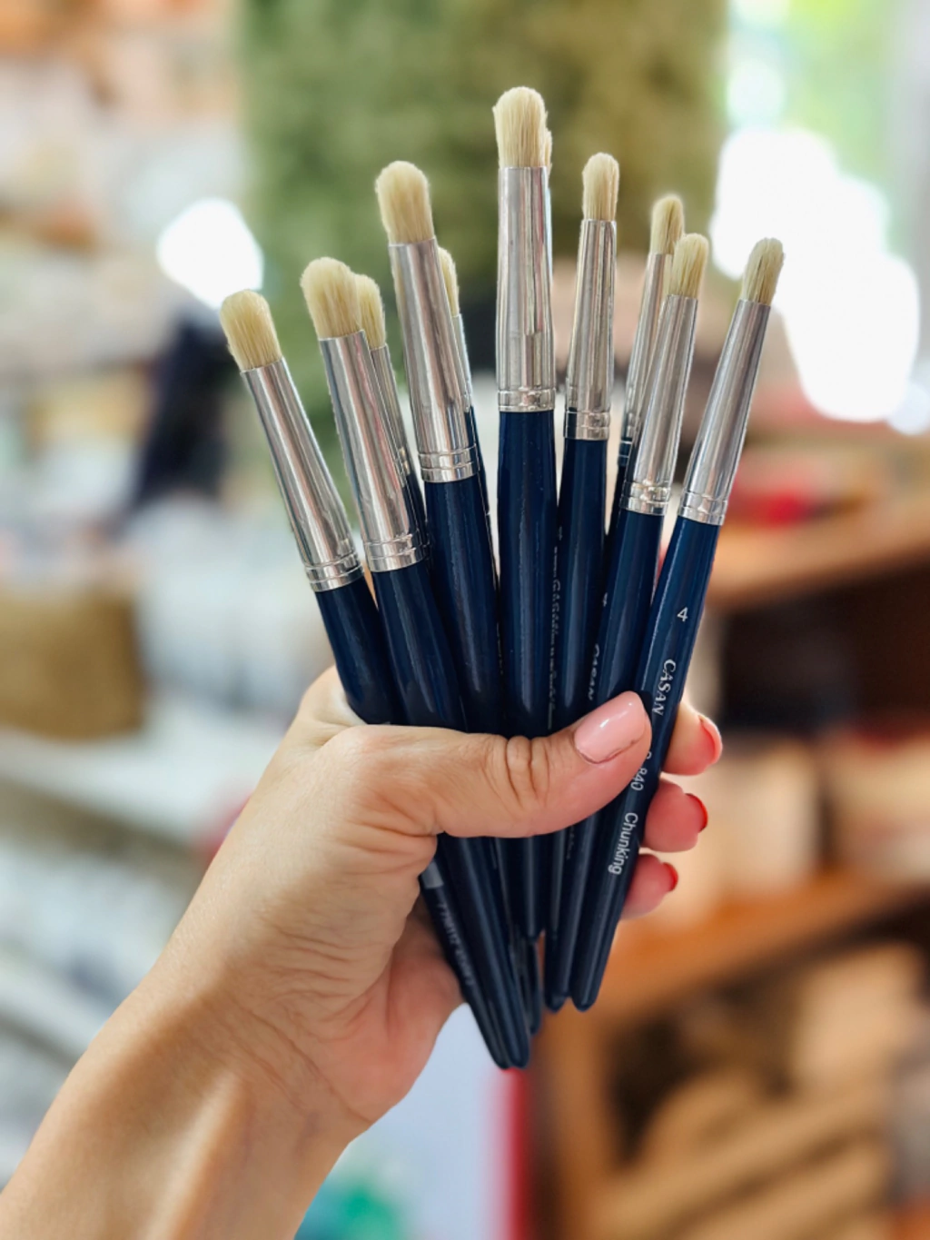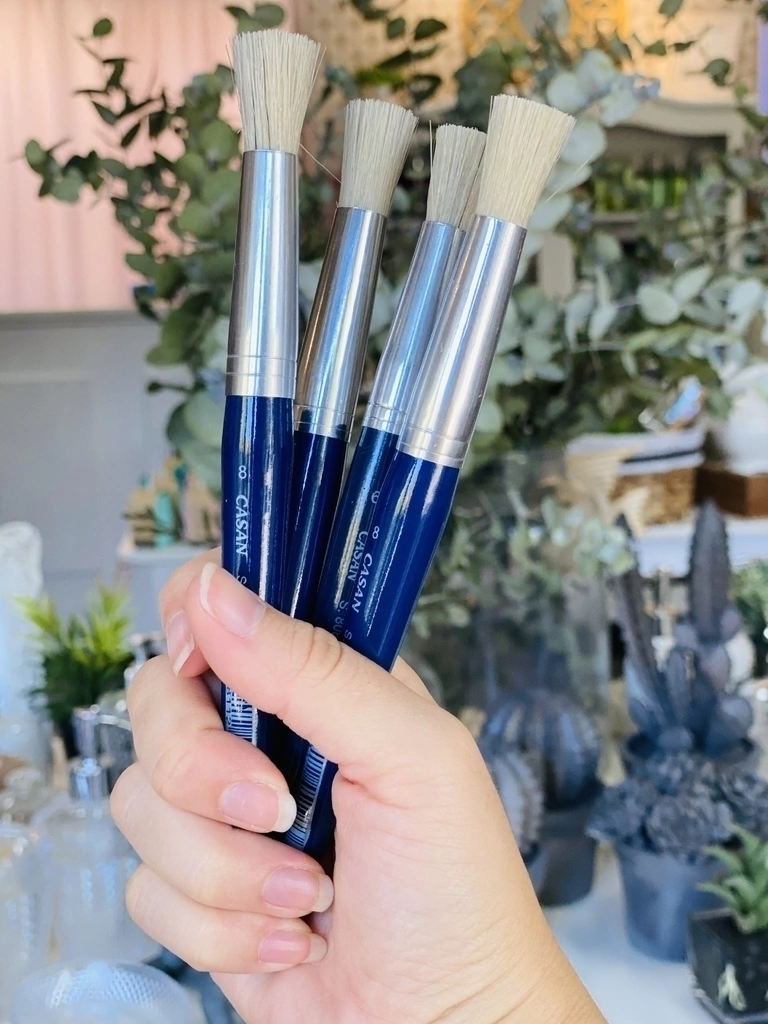Pincel Taponador Casan S.806. Pincel de cerda natural ideal para técnicas de estarcido y otras aplicaciones decorativas. Su diseño con mango de madera garantiza un agarre cómodo y firme durante su uso, permitiendo resultados precisos y uniformes.