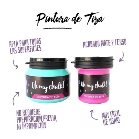 Pintura a la Tiza Oh My Chalk 110cc es una pintura al agua basada en polímeros, ideal para la decoración y restauración de muebles. Con un acabado mate y terso, es muy fácil de usar, ya que no requiere preparación previa ni imprimación. Apta para todas las superficies, es perfecta para proyectos de bricolaje y decoración. Disponible en diferentes colores, selecciona el que más te guste y agrega al carrito para comprarlo.